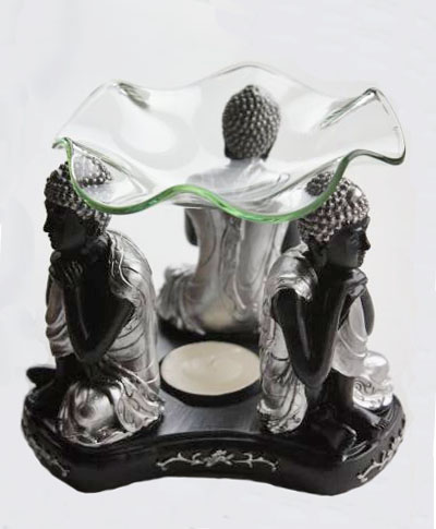 Aroma oliebrander Boeddha zwart zilver