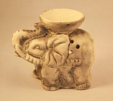 Stenen aroma olie brander, in de vorm van een olifantje. De oliebrander is ongeveer 8,5 cm hoog, 10 cm lang en 5 cm breed.