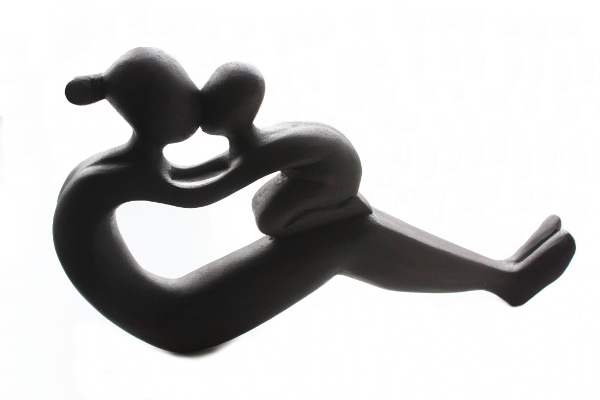 Dit mooie beeld van moeder en kind is gemaakt van massief hout. Het beeld is ongeveer 31 cm lang en 19 cm hoog.
