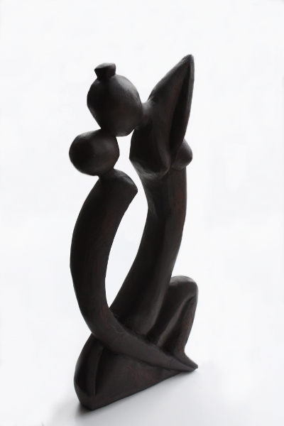 Dit mooie beeld van vrouw en kind is gemaakt van massief hout.