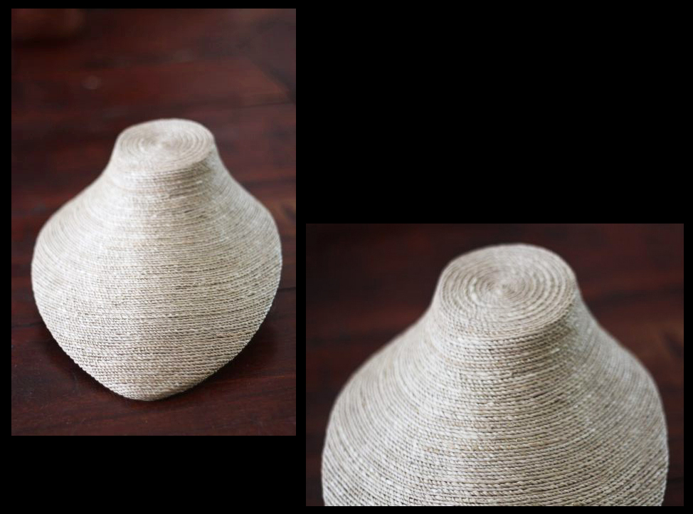 Deze fraaie ketting display is gemaakt van hout en touw. De lengte van de display is ongeveer 25 cm, het breedte gedeelte is circa 18.5 cm en de hoogte punt is 12 cm.