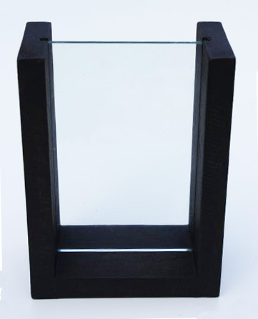 Moderne fotolijst van hout en glas.De foto van maximaal 9,5 cm breed en 15 cm hoog kan tussen de twee glas platen worden. De lijst is ongeveer 12,5 cm breed en 17 cm hoog.