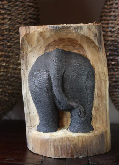 Olifant kontje in hout. Het beeld is 18 cm hoog, 12 cm breed en 5,5 cm diep.