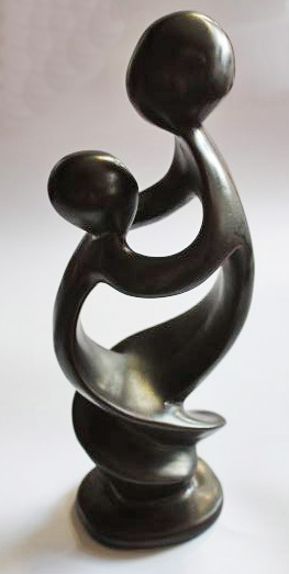 Resin beeld van groot en klein figuur. Het beeld is ongeveer 11 cm hoog en weegt circa 80 gram.
