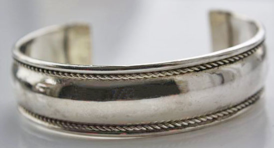Metalen armband, circa 1,7 cm breed. Dit is is een zogenaamde slavenarmband en past daarom om iedere volwassen pols.