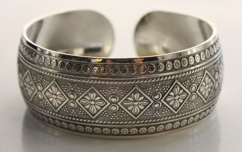 Deze schitterende armband is gemaakt door de Karen hill tribe. De armband is ongeveer 2,5 cm breed en is een zogenaamde slavenarmband en past daarom om iedere volwassen pols.