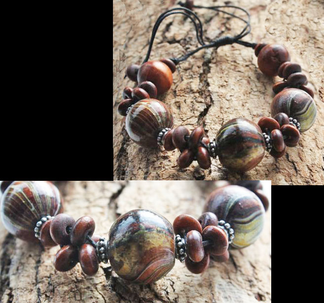 Deze mooie bruine houten kralen armband is met de hand beschilderd. De armband is aan te snoeren zodat het om elke pols past.