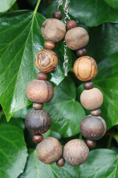 Deze elegante armband is gemaakt van diverse grote en kleine houten kralen. De armband is ongeveer 25,5 cm lang en heeft een verlengketting van 7 cm.