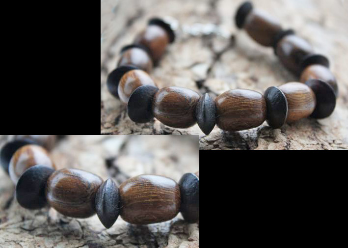 Deze armband is gemaakt fraaie mahonie houten en taps lopende kralen. De armband is ongeveer 18,5 cm en heeft een verlengketting van circa 3 cm.