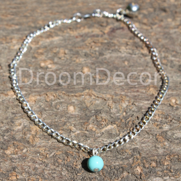 Deze schitterende enkel ketting is versierd met een stenen kraal en belletje. De enkel ketting is ongeveer 26,5 cm lang en is op elke gewenste lengte te sluiten.