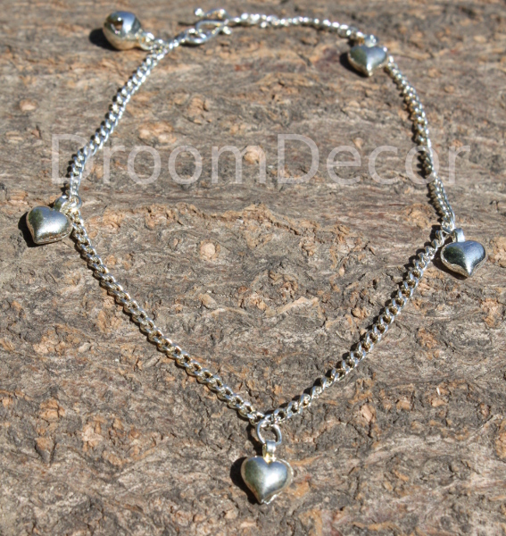 Deze schitterende enkel ketting is voorzien van diverse harten bedeltjes en een belletje. De enkelketting is ongeveer 27 cm lang en is op elke gewenste lengte te sluiten.