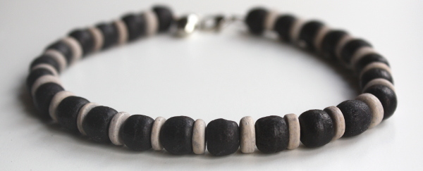 Enkelketting met zwarte en grijskleurige kralen en heeft als extra detail een belletje.