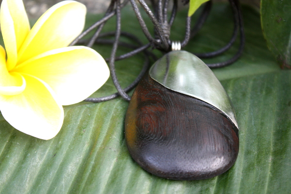 Met de hand gemaakte ketting van hout en metaal.De lengte van de ketting is zelf makkelijk aan te passen doormiddel van de knopen.