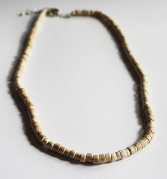 Deze mooie zomerse ketting is van lichte houten kralen gemaakt. De ketting is ongeveer 56 cm lang en heeft een verlengketting van circa 6 cm.