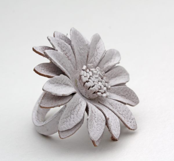 Leren ring bloem wit