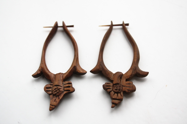 Houten oorbellen.
