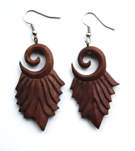 Met de hand gemaakte houten oorbellen.