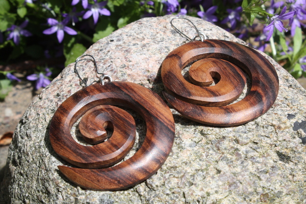 Grote houten oorbellen met een cirkel doorsnede van ongeveer 6,5 cm.