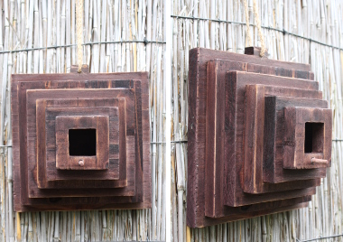 Houten vogelhuis vierkant.