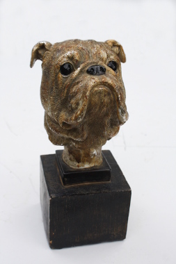 Stenen urn boxer in goud en zilver kleuren.