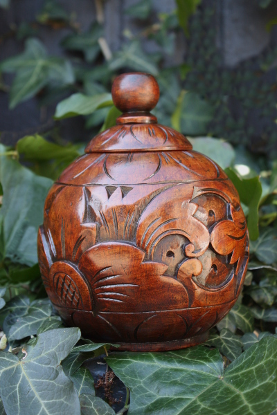 Deze schitterende urn van hout is met de hand op Bali gemaakt.Ze heeft de naam Aninda, Aninda betekent Mijn oudste dochter in het Indonesisch.Ze is 20 cm hoog en heeft een diameter van 14 cm.