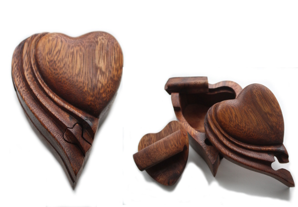 Mahonie houten asdoos hart.