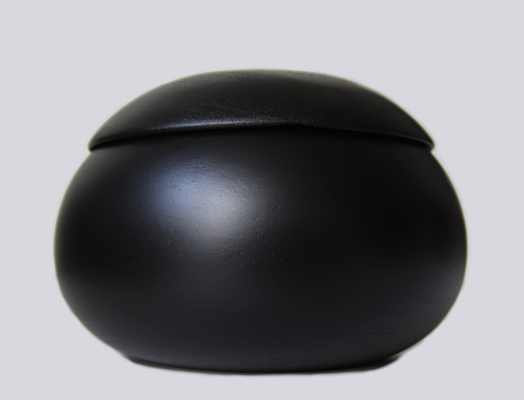 Mahonie houten urn in een ronde vorm.