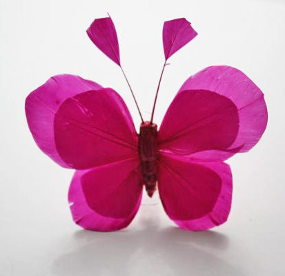 Deze mooie vlinder is van veren gemaakt. De vlinder is circa 7 cm breed en 5 cm lang. De vlinder is aan de achterzijde voorzien van een clip.