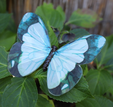 Veren vlinder.Circa afmetingen:12 cm breed10 cm langDe vlinder is op een ijzeren draad van ongeveer 10 cm gemaakt, zodat u haar ergens aan kunt bevestigen.
