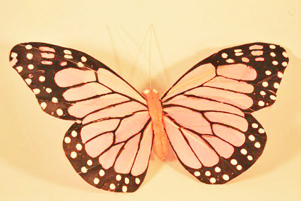 Deze grote luxe vlinder is van veren gemaakt, uitgevoerd in een roze kleur.
