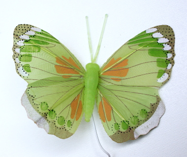 Deze mooi vlinder is van veren gemaakt.