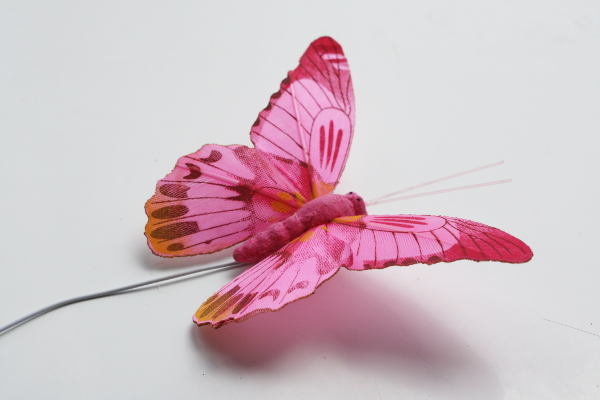 Deze luxe vlinder is van veren gemaakt. De vlinder is circa 8 cm breed en 6 cm lang.