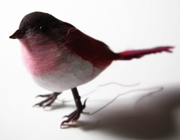 Veren vogel van ongeveer 6 cm hoog en 10 cm lang.