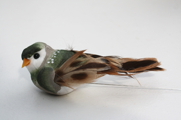 Veren vogel van ongeveer 4 cm hoog en 10 cm lang.