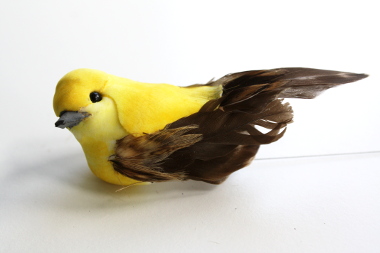 De vogel staat op een ijzerdraad dat circa 18 cm lang is. De vogel is ongeveer 3,5 cm hoog.