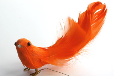 Veren vogel van ongeveer 4 cm hoog en 12 cm lang.