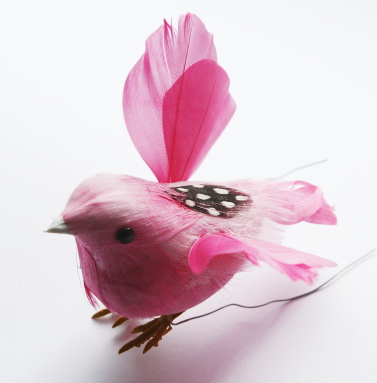 Veren vogel van ongeveer 5 cm hoog.