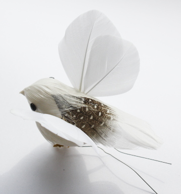 Veren vogel van ongeveer 5 cm hoog en 6 cm lang.