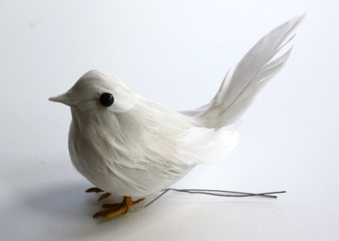 Veren vogel van ongeveer 5 cm hoog en 10 cm lang.