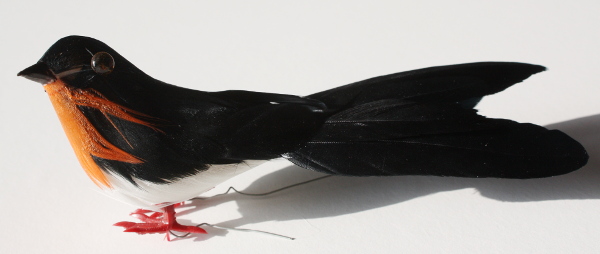 Veren vogel van ongeveer 5.5 cm hoog en 14 cm lang.