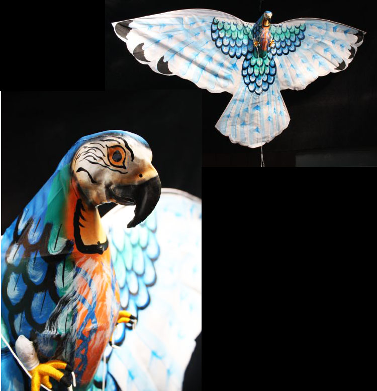 Deze schitterende vrouwelijke papegaai heeft een spanwijdte van circa 300 cm.