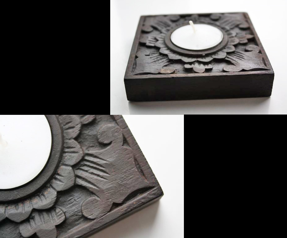 Waxinelicht houder hout plat bewerkt donker