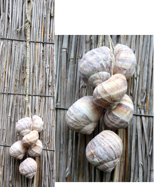 Deze windgong is gemaakt van schelpen en touw.